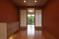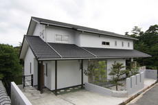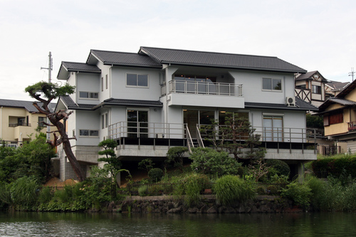 池の畔に建つ完全二世帯住宅