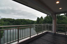 池の畔の木々を借景としています